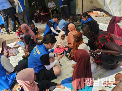 | 지난해 광주시교육청이 운영한 ‘글로벌 리더 세계 한 바퀴’ 프로그램에 참여한 학생들이 아프리카 현지에서 세계시민의식을 함양하고 있다. |