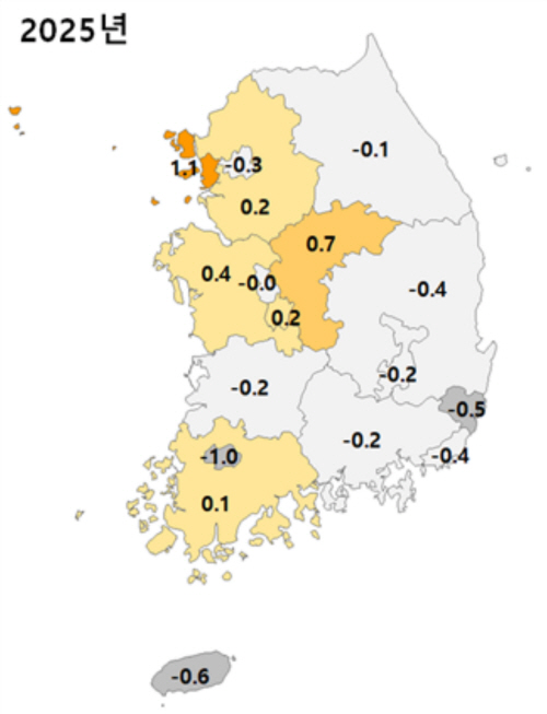 특히 광주는 2030 인구 감소가 두드러졌다. 광주 30대 순유출률은 -1.6%로 전국에서 가장 높았고, 20대 역시 -3.0%의 순유출 흐름을 보이며 청년층 전반의 감소세가 이어졌다. 20대 인구 유출률이 가장 높은 지역은 경북으로 -3.9%에 달했다.