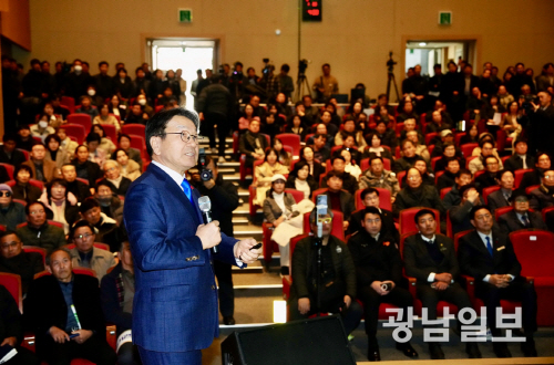 강기정 시장은 이날 장성문화예술회관 소공연장에서 ‘광주전남 통합 장성군민과의 상생토크’를 갖고, “통합 후 교통·의료·교육 등 생활서비스 획기적 개선을”강조했다.