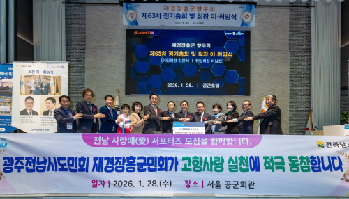 전남도는 최근 서울에서 열린 재경장흥군향우회 정기총회 및 회장 이·취임식에 참석해 고향사랑 실천 도정설명회를 열고, 출향 인사들과의 지속적인 협력 방안을 공유했다. 이날 행사에는 광주전남시도민회 이성백 수석부회장과 김연식 시군협의회장, 김성 장흥군수, 김재승 장흥군의회 의장, 문금주 국회의원 등 향우회원 300여 명이 함께했다.