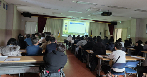 | 지난해 12월 장애인일자리사업 참여자들이 노인회관에서 2026 장애인일자리사업 교육을 받고 있다. |