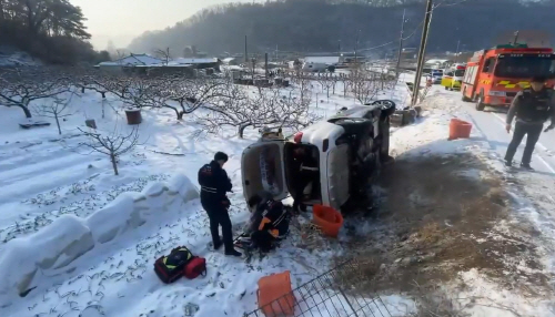 경찰과 소방당국은 차량이 눈길에 미끄러지며 사고가 난 것으로 보고 정확한 경위를 조사 중이다.