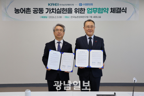 | 한국농촌경제연구원과 수협중앙회는 3일 연구원 7층 세미나실에서 농어촌 공동 가치실현을 위한 업무협약(MOU)을 체결했다. |