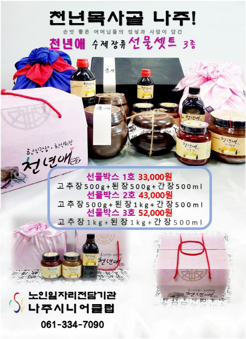 현재 남도장터에서 판매하는 노인 일자리 생산품은 여수시니어클럽 김치류, 순천시니어클럽 손질 멸치·누룽지세트, 곡성시니어클럽 참기름 세트, 고흥시니어클럽 참깨 누룽지, 보성시니어클럽 녹차 기름 세트, 완도시니어클럽 김·유자사과 주스 세트 등 다양하게 준비됐다. 온라인뿐만 아니라 오프라인 판매처를 통해서도 구입할 수 있다.
