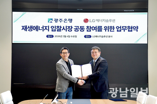광주은행은 지난 4일 LG에너지솔루션과 ‘재생에너지 입찰 시장 공동 참여·상호 협력을 위한 업무협약’을 체결했다고 5일 밝혔다.