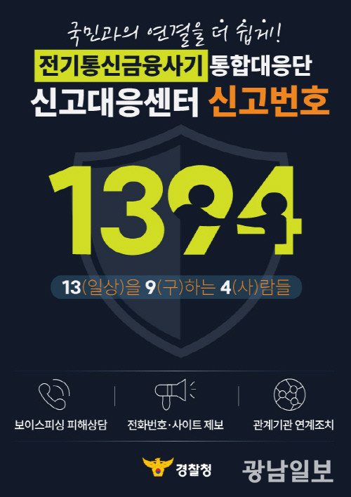한편 경찰청은 보이스피싱 예방과 신속한 대응을 위해 전기통신금융사기신고대응센터를 운영 중이며, 2월 1일부터는 대표번호 ‘1394’를 통해 즉시 상담과 신고가 가능하도록 했다. 보이스피싱이 의심될 경우 지체 없이 112 또는 1394로 신고하면 된다.