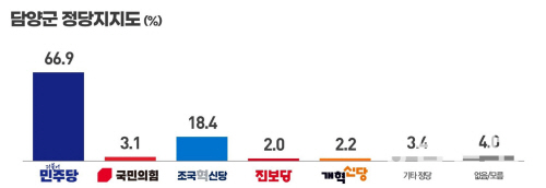 담양군 정당지지도는 조국혁신당이 18%대의 비교적 높은 지지를 얻었다.