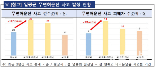 같은 기간 무면허 운전 사고도 33건, 피해자 수는 13명으로 각각 평상시보다 50.0%, 62.5% 많았다.