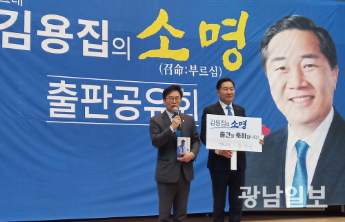 | 6·3 지방선거 광주 남구청장 출마를 선언한 김용집 전 광주시의회 의장이 최근 남구 빛고을노인건강타운 체육관에서 저서 ‘김용집의 소명’ 출판공유회를 갖고 하고 남구 발전 비전을 공개했다. |