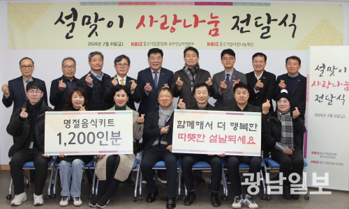 | 중소기업중앙회 광주전남지역본부는 최근 지역본부 사무실에서 ‘설맞이 사랑나눔 전달식’을 개최하고 지역 내 복지기관 10곳에 명절음식키트 1200인분을 전달했다. |