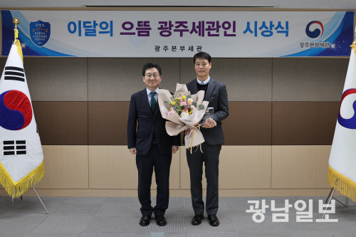 | 광주본부세관은 목포세관 김일한 주무관(오른쪽)을 ‘2월의 으뜸 광주세관인’으로 선정해 포상했다. |