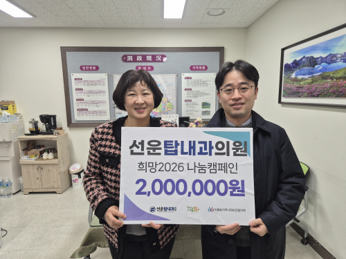 이주남 어룡동장은 “어려운 시기에도 변함없이 나눔을 실천해 주신 선운탑내과에 감사하다”며 “기탁금은 필요한 곳에 투명하고 소중하게 사용해 주민들에게 실질적인 도움이 되도록 하겠다”고 약속했다.