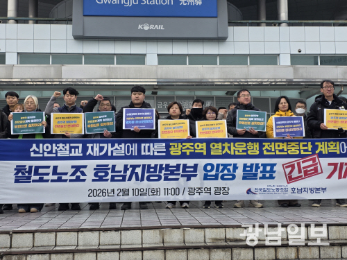 김동구 철도노조 호남본부장은 “한국 철도는 단 한 번의 중단 없이 국민의 삶을 이어왔고, 주요 선로 개량 공사도 운행을 유지하며 진행됐다”며 “1922년 영업을 시작한 광주역은 역사적 상징성을 지닌 공간이지만 KTX와 셔틀열차가 사라진 데 이어 장기간 운행 중단까지 검토되고 있다”고 지적했다.