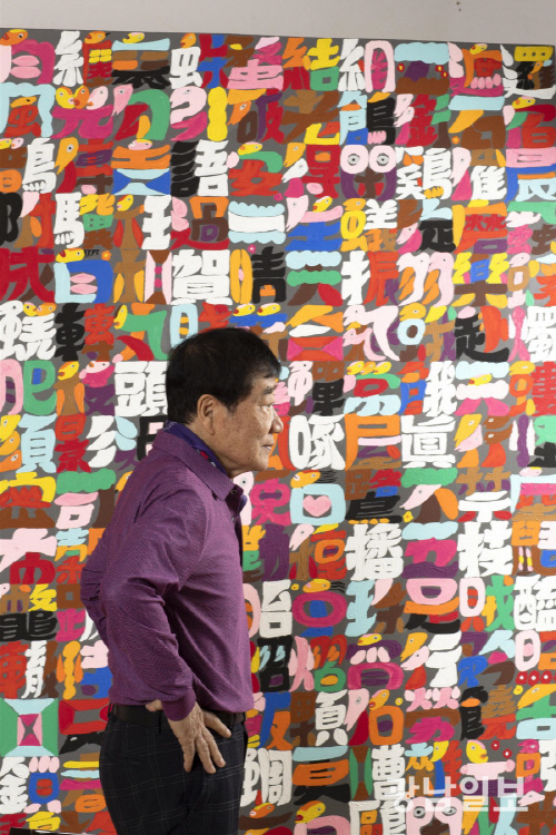| 작품 앞에 선 생전의 황영성 화백. |