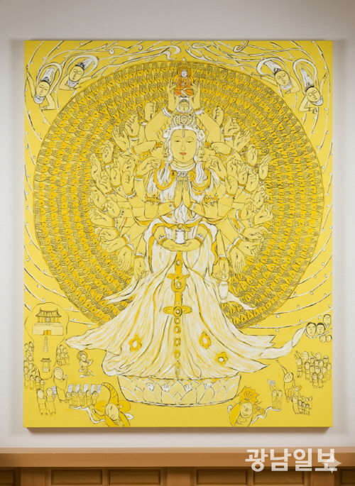 전시는 13일 개막, 오는 3월 31일까지 로터스아트스페이스 제1전시실에서 열린다. 출품작은 ‘천수천안관음보살도’를 포함한 12점과 ‘반야심경’ 및 관련 삽화 71점 등 총 83점이다.