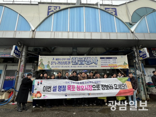 | 광주·전남지방중소벤처기업청은 10일 ‘목포 청호시장’에서 전통시장 장보기와 내수 활력 회복을 위한 소비촉진 캠페인을 개최했다. 광주·전남지방중소벤처기업청 제공 |