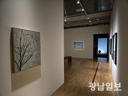 | ‘파편의 파편: 박치호·정광희’ 전시 전경. 왼쪽에 설치된 작품은 박치호 작 ‘마른 나무’. |