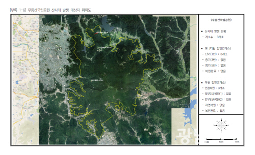 | 무등산국립공원 산사태 발생 대상지 위치도 |
