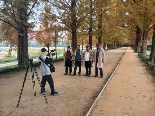 | 생애전환문화예술교육 ‘블루아저씨의 명랑 느와르 필름로그’ 참여자들이 영상을 촬영하고 있다. |
