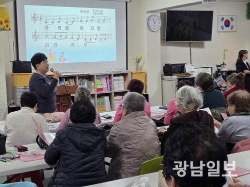 행사 분위기는 노래교실에서 한층 달아올랐다. 한 고려인이 마이크를 잡고 ‘아리랑’을 부르자, 강의장 곳곳에서 자연스럽게 박수와 추임새가 터져 나왔다. 이어 ‘남행열차’, ‘해뜰날’까지 노래가 이어지면서 강의장은 순식간에 작은 공연장으로 변했다. 강사가 한 구절을 선창하면 어르신들이 따라 부르고, 다시 처음부터 끝까지 합창을 이어가며 흥겨운 분위기가 이어졌다.