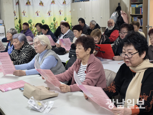설 명절을 앞둔 12일 오전 10시30분, 광주 광산구 월곡동 고려인종합지원센터 지하 1층 강의장. 이른 시간부터 모여든 고려인 어르신 60여명이 서로 손을 잡고 인사를 나누며 강의장을 따뜻한 온기로 채웠다. 곳곳에서 러시아어와 한국어가 뒤섞인 정겨운 대화가 오갔고, 웃음소리는 끊이지 않았다.