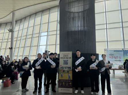 | 한국농어촌공사 전남지역본부는 최근 설 명절을 맞아 광주송정역에서 농지은행사업 홍보에 나섰다. |
