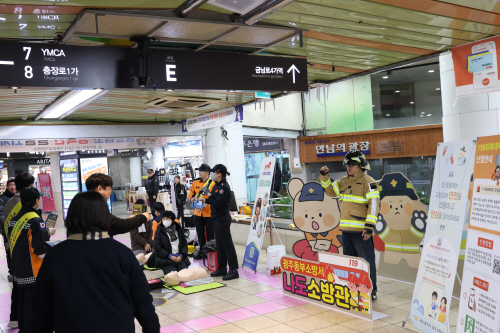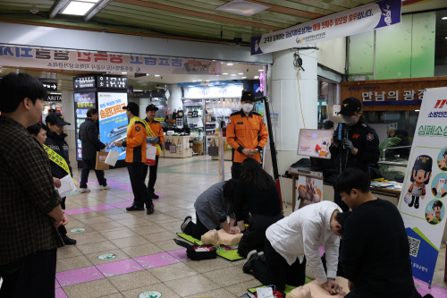 | 광주 동부소방은 광주도시공사, 금남지하도상가 상인회와 13일 금남지하도상가 만남의 광장에서 설 명절 맞이 화재예방 일제 캠페인 및 심폐소생술 캠페인을 진행했다. |