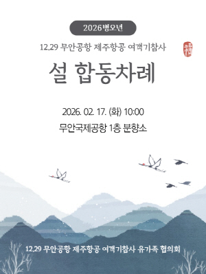 12·29 무안공항 제주항공 여객기참사 유가족협의회는 17일 오전 10시 무안국제공항 1층 분향소에서 병오년 설을 맞아 온 가족이 모여 설 합동 차례를 갖는다.