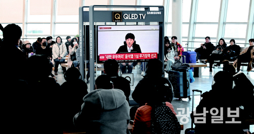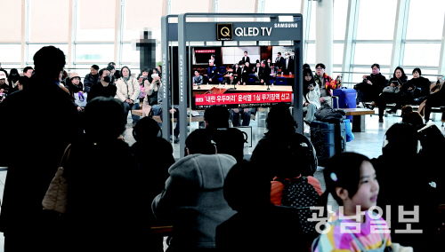 | ‘내란 우두머리’ 혐의 윤석열 1심 무기징역 선고 19일 오후 광주송정역 대합실에서 시민들이 12·3 비상계엄 관련 내란 우두머리 혐의로 기소된 윤석열 전 대통령에 대한 1심 선고공판 TV 생중계를 시청하고 있다. 이날 서울중앙지법 형사합의25부(지귀연 부장판사)는 윤 전 대통령에게 무기징역을 선고했다.최기남 기자 bluesky@gwangnam.co.kr |