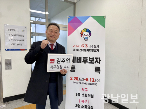 김 위원장은 이날 북구 선거관리위원회를 찾아 예비후보 등록서류를 전달했다.