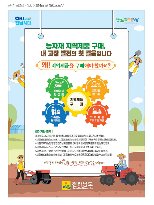 캠페인은 전남에 주소를 둔 업체가 직접 생산한 친환경농자재 구매를 확대해 지역 내 생산·소비 선순환 구조를 구축하고, 일자리 창출, 지역 자본의 역외 유출 방지 등을 통해 지역경제를 활성화하기 위해 추진한다.