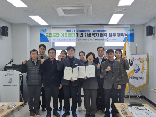 협약에 따라 광주기상청은 폭염·한파 영향예보와 단계별 행동요령, 기상특보, 위험기상정보를 제공하고, 센터는 이동장터 차량 전광판, 외부 모니터, 음성 안내 시스템을 활용해 배후마을 주민에게 기상정보를 알린다.