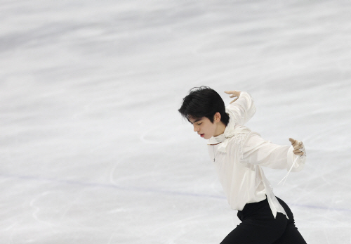 | 13일(현지시간) 이탈리아 밀라노 아이스스케이팅 아레나에서 열린 2026 밀라노ㆍ코르티나담페초 동계올림픽 남자 싱글 프리 스케이팅에 출전한 차준환이 연기를 펼치고 있다. 연합뉴스 |