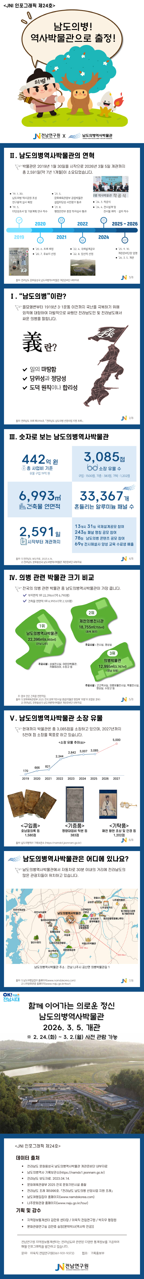 전남연구원은 23일 JNI 인포그래픽 ‘남도의병! 역사박물관으로 출정!’을 통해 남도의병의 개념과 역사, 박물관 조성 경과와 규모, 소장 유물 현황을 종합적으로 소개했다.
