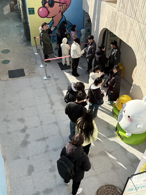| 지난 7일 몰랑하우스 순천 상설 굿즈샵 입장을 기다리는 방문객들이 추운 날씨에도 길게 줄을 서 있다. |