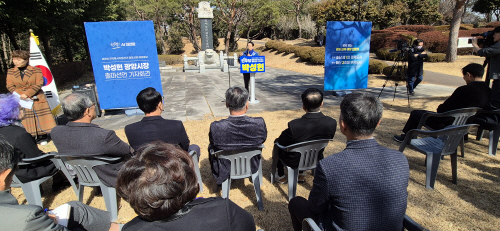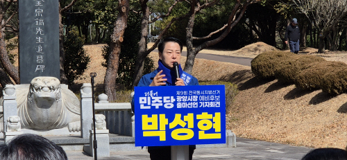 | 박성현 더불어민주당 광양시장 예비후보(전 여수광양항만공사 사장)가 23일 설성 김종호 선생 추모비가 소재한 광양읍 우산공원에서 공식 출마를 선언했다. |
