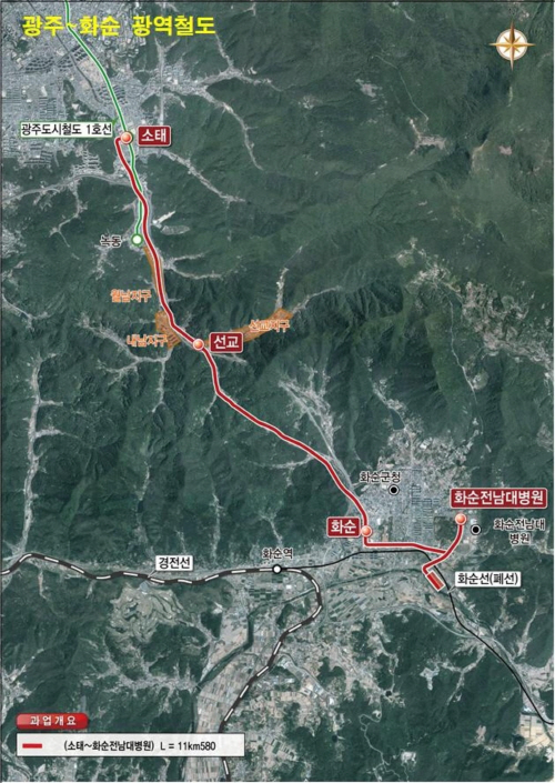 광주~나주 광역철도는 총사업비 1조7000억원을 투입해 광주 상무역을 출발해 효천역~도시첨단산단~남평읍~광주전남공동혁신도시를 거쳐 나주역까지 총연장 28.77㎞를 연결, 광주~화순 광역철도는 총사업비 4600억원을 투입해 광주 소태역을 출발해 선교~화순읍을 거쳐 화순전남대병원까지 11.58㎞를 연결하는 사업이다.