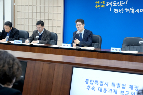 앞서 전남광주통합특별시 특별법은 통합을 추진 중인 지역 가운데 유일하게 국회 법제사법위원회를 통과하면서 제도적 기반 마련이 가시화됐다. 전남도는 이에 맞춰 중앙정부 및 관계 부처와 협의를 강화해 국가 지원을 최대한 확보하고, 시행령 등 하위 법령에 핵심 권한과 재원이 반영되도록 선제 대응에 나설 계획이다.