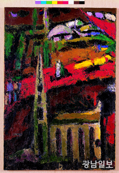 이를 견고한 화폭이라고 평가한다. 전시장 한편에 가톨릭에 귀의한 그의 ‘성체조배’라는 묵상 글에서는 빛으로 형상화한 십자가 잔상이 나타나도록 해 오래 기억에 남을 듯 싶다.
