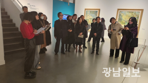 이어 걸음걸이가 불편함에도 직접 전시장을 찾은 김재형 원로작가는 한국화단의 거장인 오지호·임직순 화백이 대학 은사님들이라고 소개했다. 그래서 두 거장과 함께 했던 기억을 특별한 순간으로 표현한다.