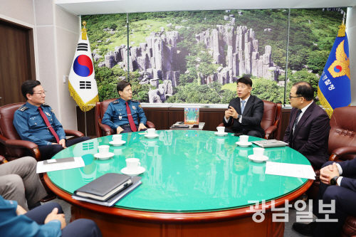 | 김학선 광주국세청장과 김영근 광주경찰청장은 25일 광주경찰청에서 간담회를 갖고 고질 체납자 단속을 위한 협력방안을 모색했다. |