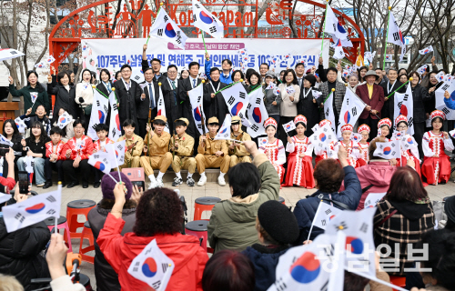 | ‘대한독립만세’ ‘빼앗긴 조국,그날의 함성’을 주제로 1일 오후 광주 광산구 고려인마을 일원에서 열린 제107주년 3·1절 기념행사에서 박병규 광산구청장과 고려인마을 주민들이 기념촬영을 하고 있다.최기남 기자 bluesky@gwangnam.co.kr |