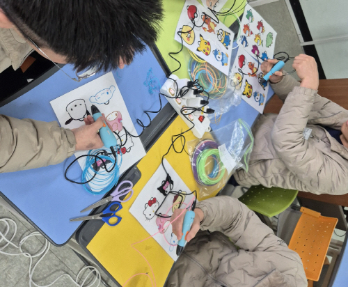 | 3D펜을 이용한 나만의 작품 만들기를 체험하고 있는 청소년들. |