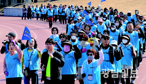 | ‘건강 100세 시대’를 위한 ‘슬로우조깅단’ 발대식 4일 오전 광주 서구 치평동 상무시민공원에서 열린 ‘슬로우조깅단’ 발대식에 참석한 풍암·상무·치평·화정·유덕·동천·금호 등 6개 권역 주민들이 함께단체 조깅을 하고 있다. 슬로우조깅은 천천히 달리는 방식으로 관절 부담을 줄이면서도 체력 향상과 체지방 감소에 효과적인 운동이다. 일상에서 누구나 쉽게 실천할 수 있는 대표적인 저속노화 운동으로 주목받고 있다. 최기남 기자 bluesky@gwangnam.co.kr |