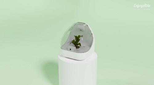 | 즐거운 상상의 대표 제품인 ‘아무무’는 카메라 모듈을 통해 사용자의 표정 등을 분석해 사용자의 현재 감정을 전달하는 인공지능 감성 스마트 소형가전으로, 불안, 우울 등 부정적인 감정을 먼저 알아채 제품에 내장된 식물을 이용한 케어까지 제공한다. |