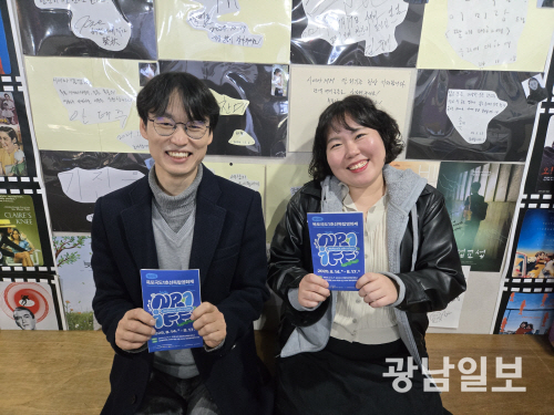 | 정성우 대표와 지난해 데뷔한 김한나 감독이 ‘목포국도1호선독립영화제’를 홍보하는 모습. |
