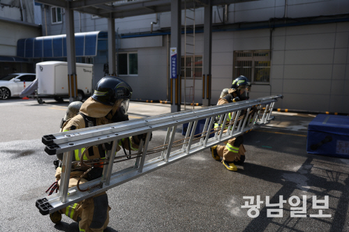 광주 동부소방은 지난 4일부터 6일까지 소방공무원의 현장 대응 역량을 강화하고 업무 전문성을 높이기 위한 2026년 상반기 소방전술훈련 평가를 진행한다. 사진제공=광주 동부소방서