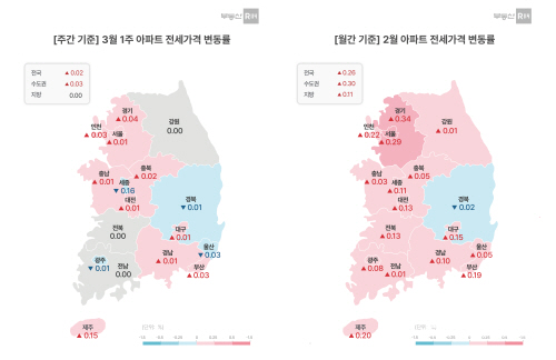 지역별로는 경기(0.34%), 서울(0.29%), 인천(0.22%), 제주(0.20%), 부산(0.19%) 등 순으로 올랐다. 경북(-0.02%)을 제외한 모든 지역에서 상승했다.