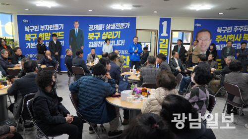 | 더불어민주당 김동찬 북구청장 예비후보가 최근 선거사무소 개소식을 갖고, 지역민과 비전과 정책을 공유했다. |