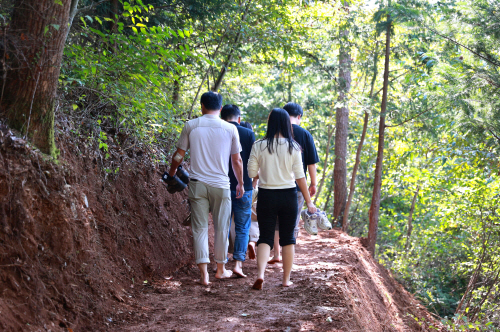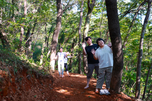 | 보성읍 망제산에 조성한 ‘맨발 산책길’을 주민들이 걷고 있다. 사진제공=보성군 |